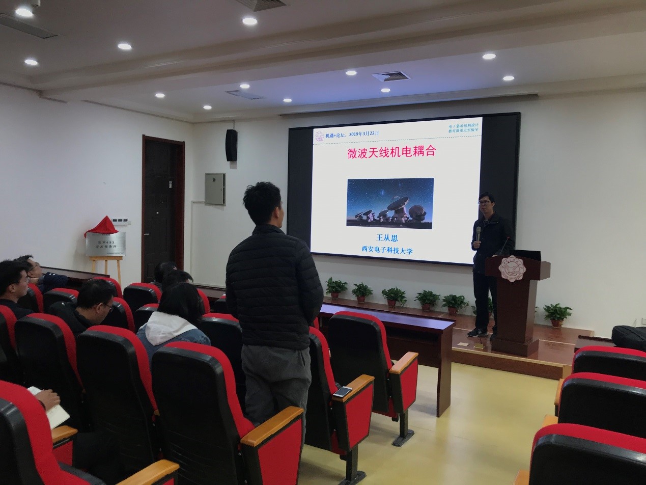 随后,太阳成集团tyc151cc科研副经理王从思教授作为本次“机遇+”系列论坛的发起者也是首次报告人,在本次的前沿论坛中,为大家带来了题为《微波天线机电耦合》的精彩学术报告。王教授梳理了微波天线机电耦合的研究现状与发展方向,介绍了机电耦合理论在不同领域的工程应用情况,并重点介绍了太阳成集团tyc151cc电子装备结构设计教育部重点实验室在机电耦合领域的研究进展。最后,针对报告中微波天线机电耦合的相关问题,在场师生与王教授进行了热烈的交流讨论。