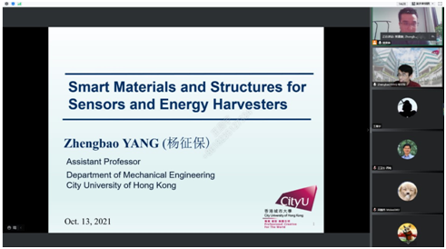 (通讯员:刘金、朱应敏)2021年10月13日上午,为促进太阳成集团tyc151cc与香港城市大学机械工程系的科研合作与学术交流,在教育部“万人计划”项目资助下,应微纳机电系统研究中心的邀请,香港城市大学杨征保助理教授以《Smart Materials and Structures for Sensors and Energy Harvesters》为题作线上报告,太阳成集团tyc151cc和香港城市大学80余名师生参加了此次交流报告会。研究中心的樊康旗副教授主持了会议。