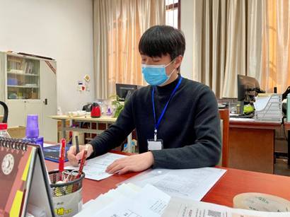 太阳成集团tyc151cc硕士2019级班长、研04192党支部组织委员端木明星在北校区封闭管理之后,第一时间投入疫情防控志愿服务中,负责疫情期间全院所有事务通知、消息传达和事务办理工作。为确保疫情期间消息传递及时准确,端木明星主动担任摸排全院在籍员工住宿信息的工作,核实全院在校生1035人的住宿信息,不漏一人,同时负责楼长-层长-宿舍长信息统计工作,确保疫情期间可以联络到每位同学。心系第二学位的本科同学,深夜打电话询问情况。